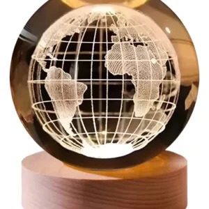 Esfera cristal 3D Tierra luz calida 6cm / XV-864