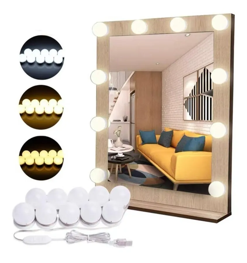 kit 10 luces Led para espejos con adhesivo y/o sopapa / LED-83051