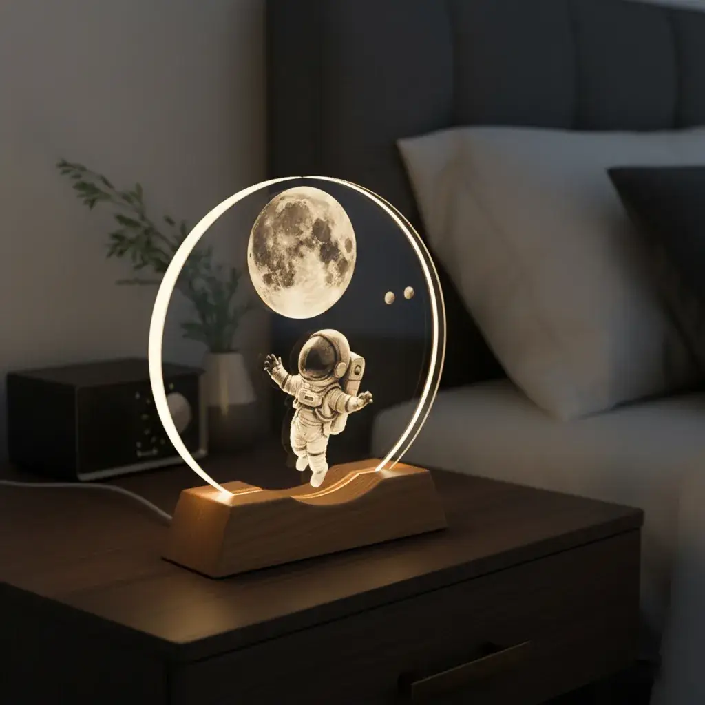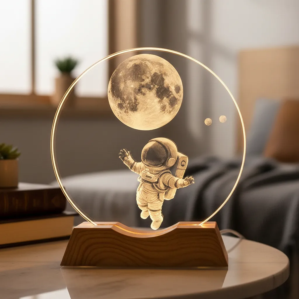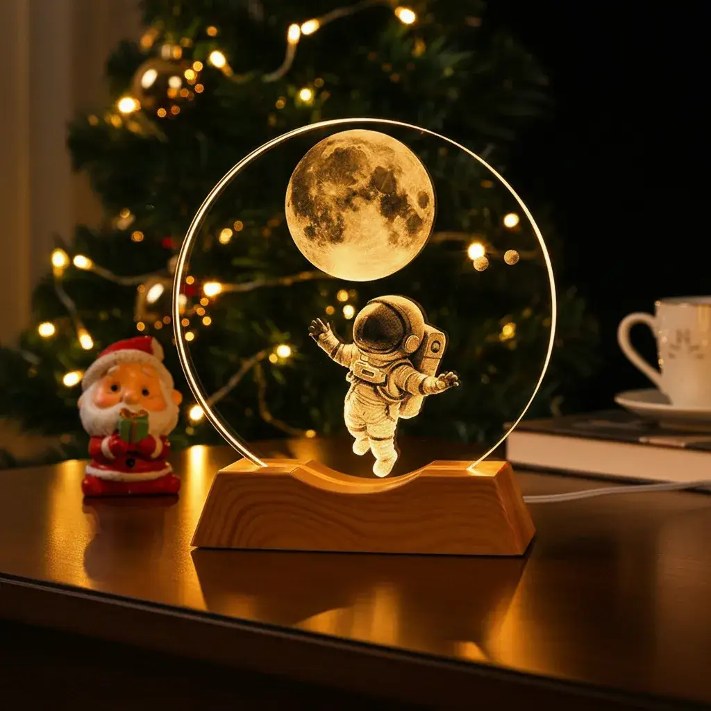 Lampara velador 3D cristal USB 8cm Astronauta / AST984