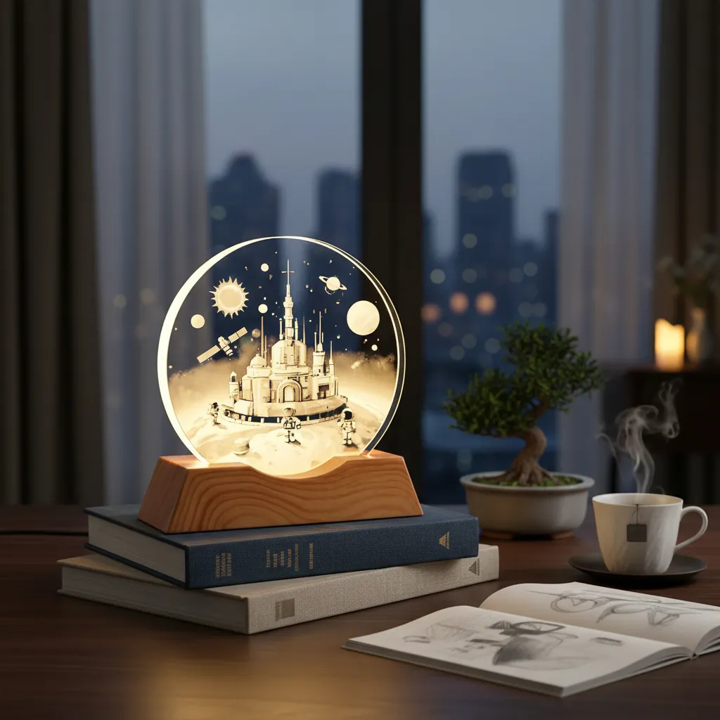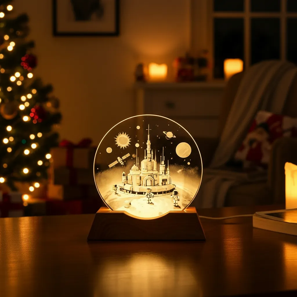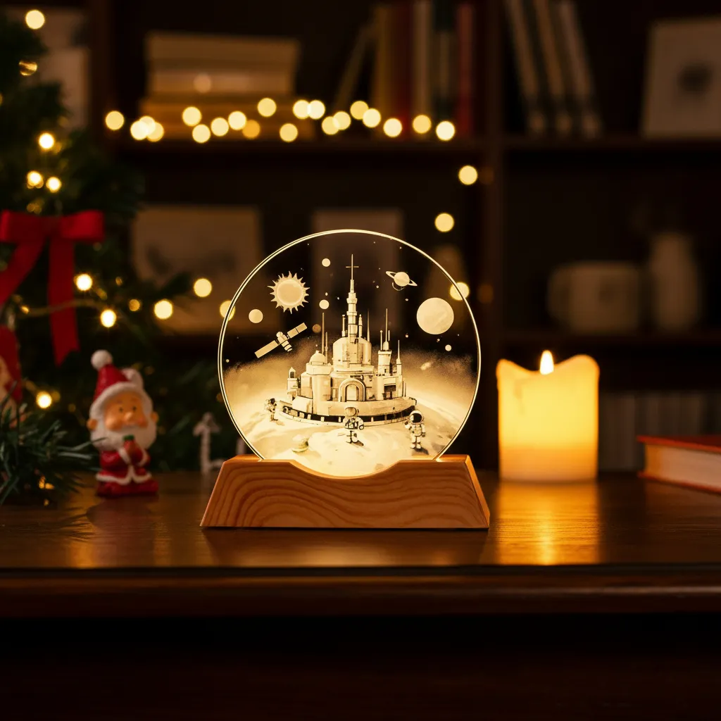 Lampara velador 3D cristal USB 8cm Astronauta castillo / AST982