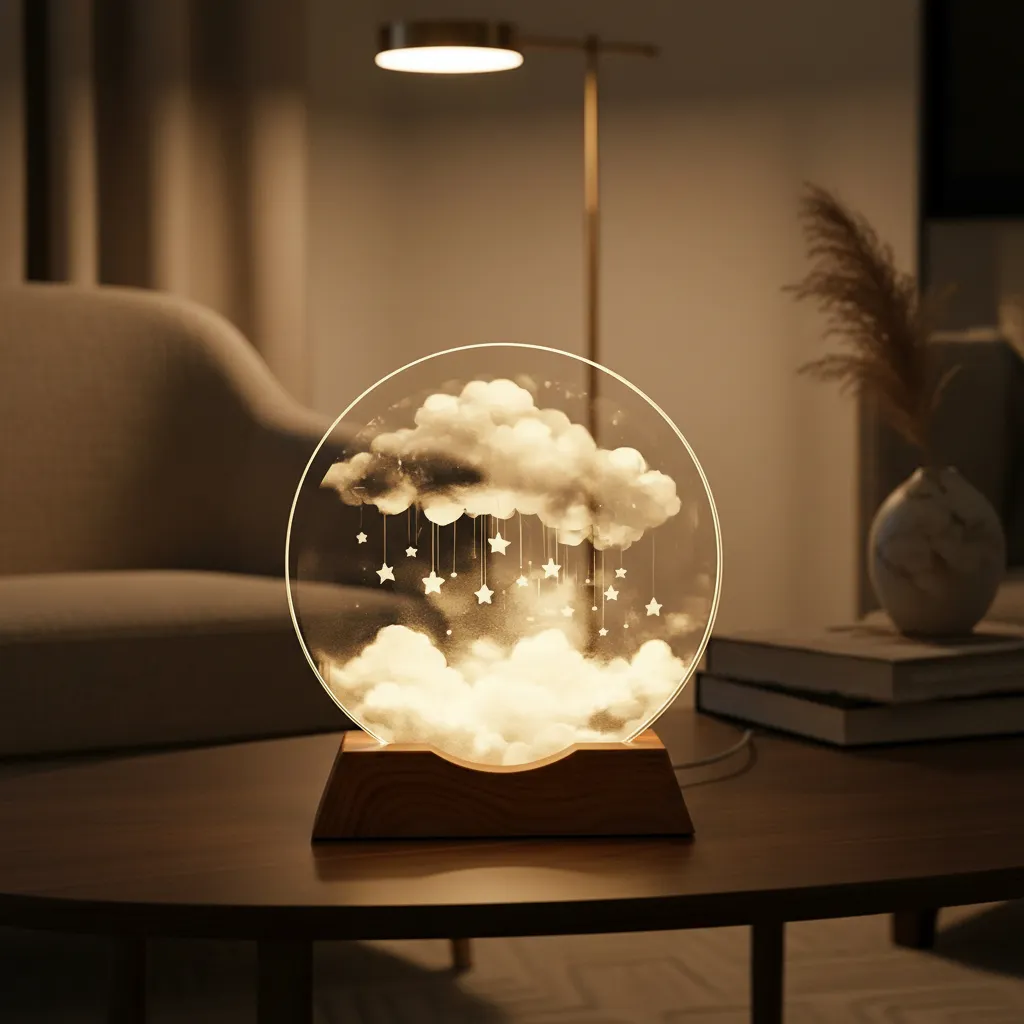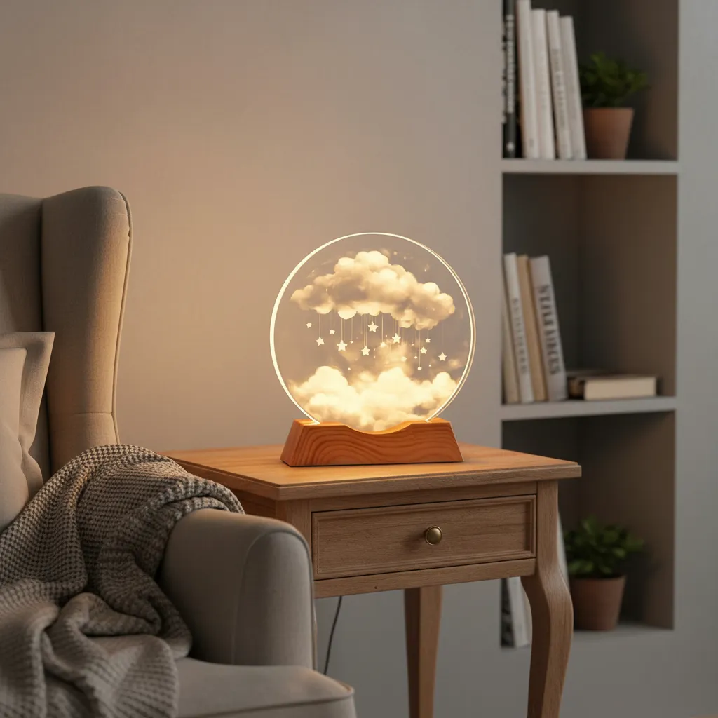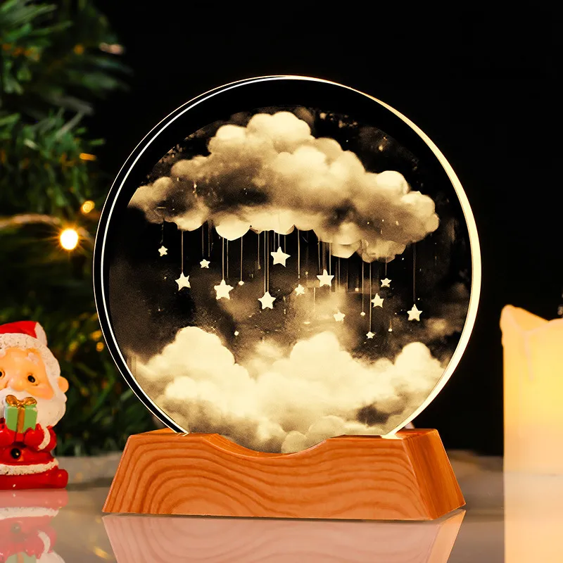 Lampara velador 3D cristal USB 8cm Nube Estrellas / NES988