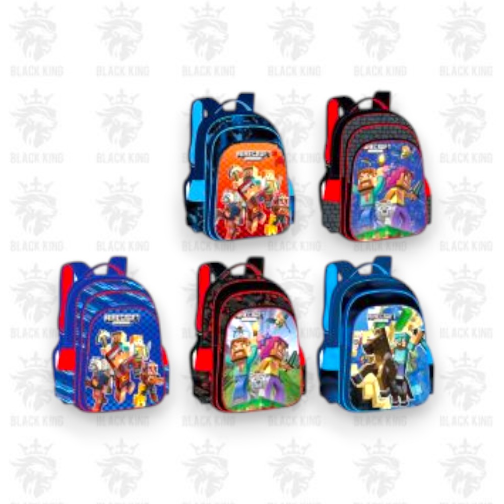 Mochila minecraft tora 16″ 3 cierres / 22036