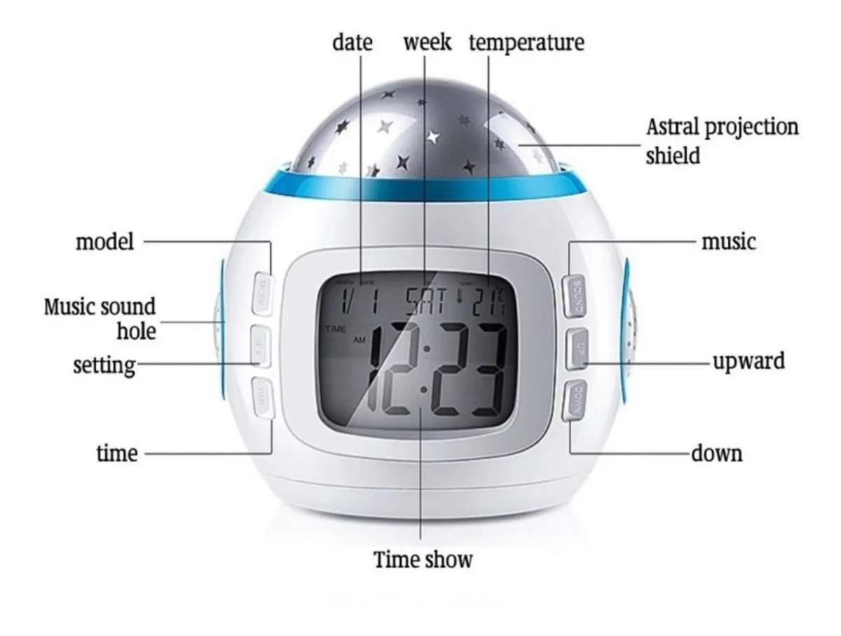 Reloj despertador proyector estrllas y musica blanca / REJ-121009