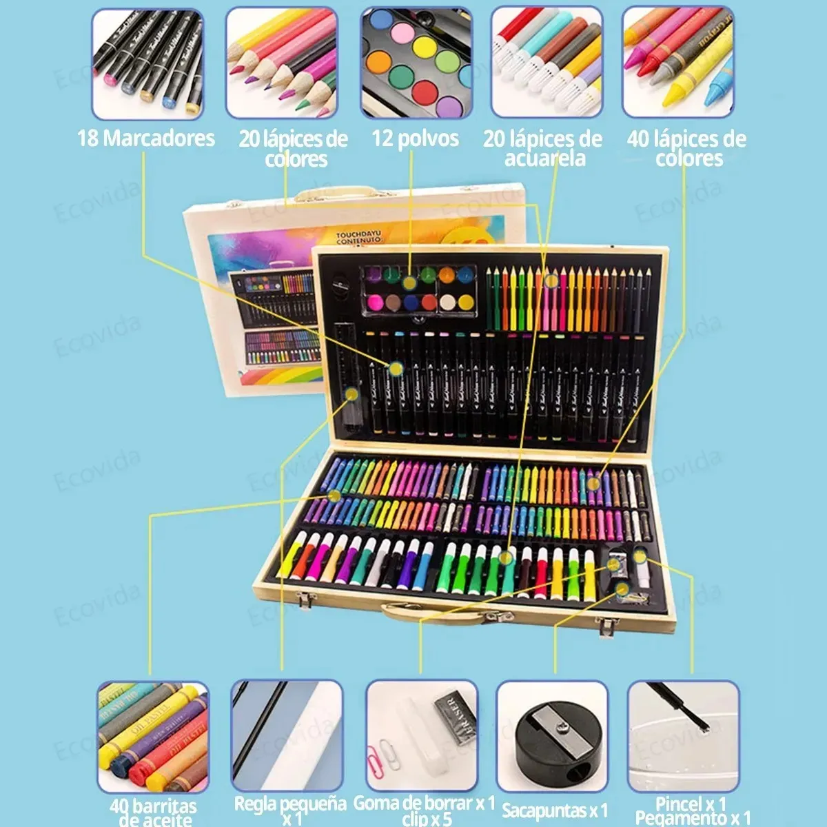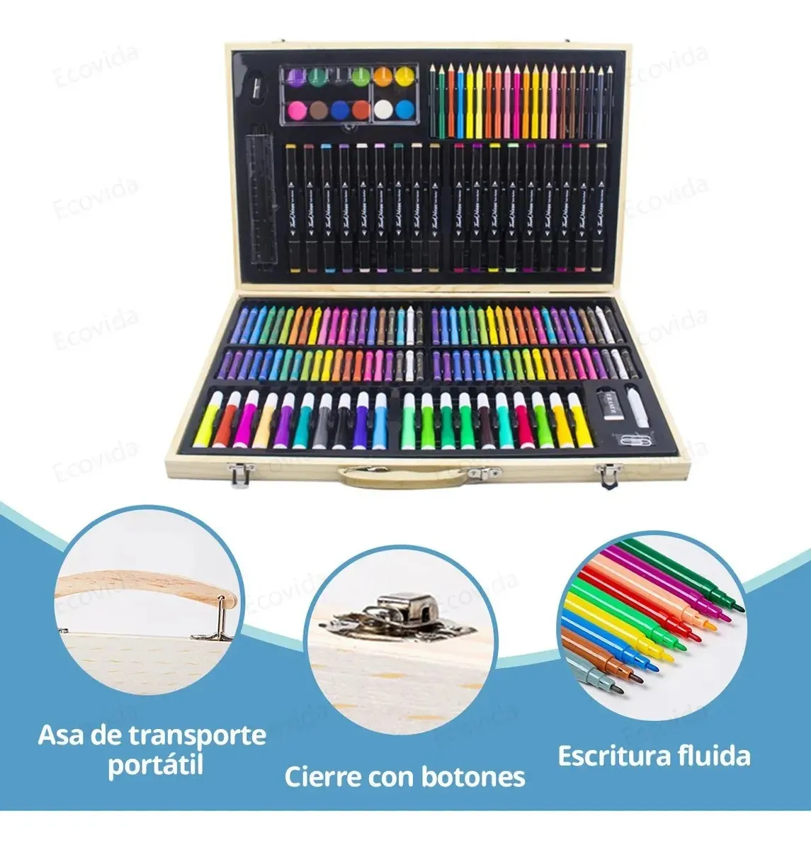 Set de arte 180pcs con maleta de madera / SAFT005