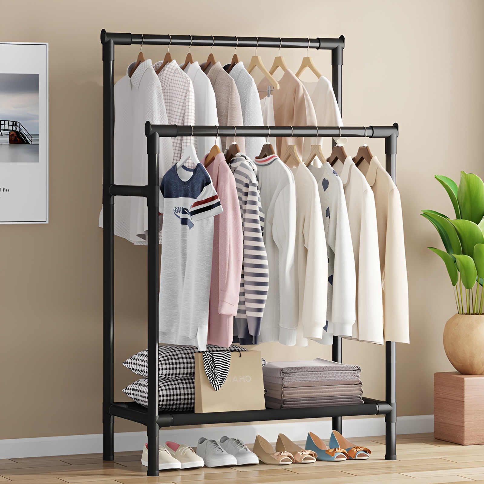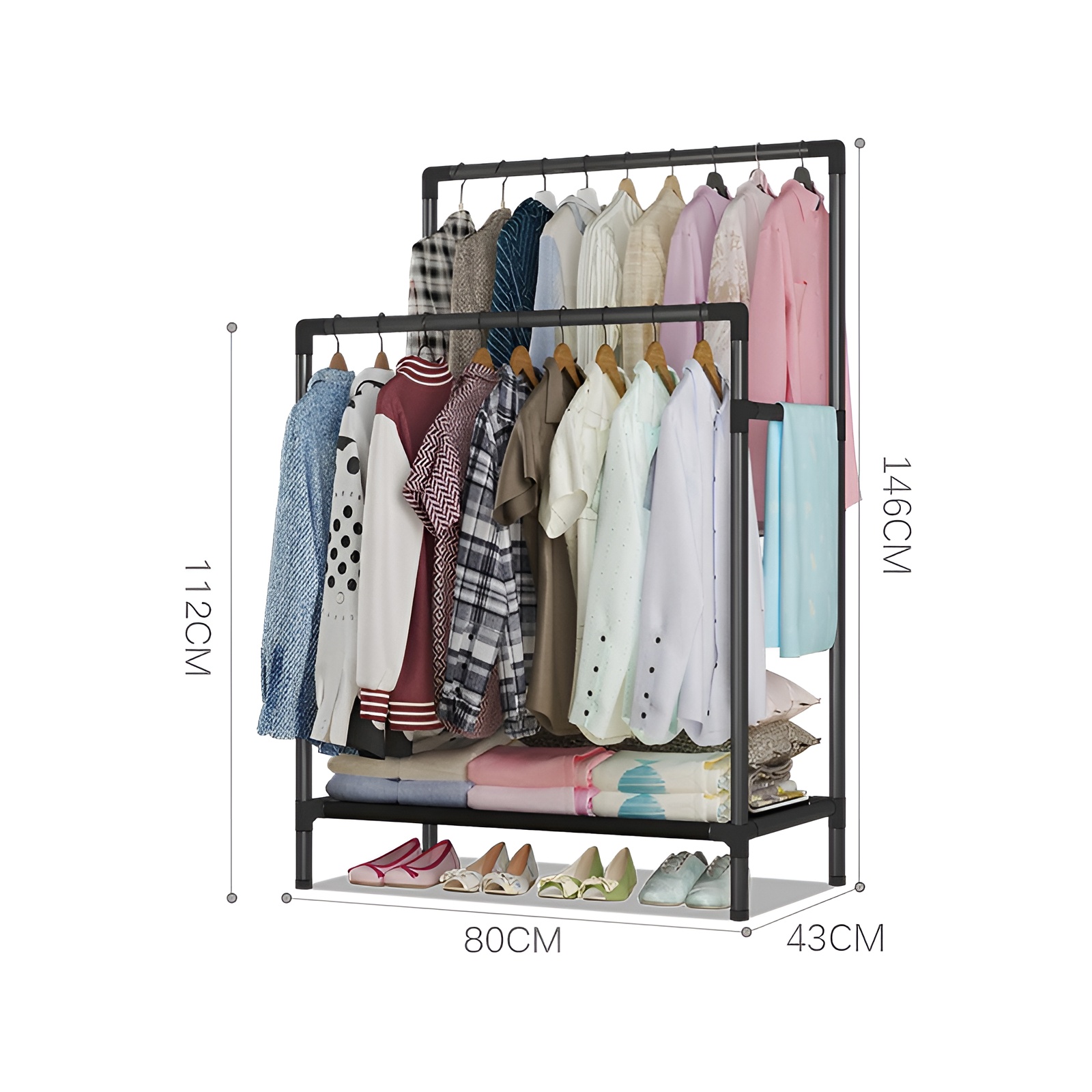 Tendero de ropa de pie doble barra / NF-2318