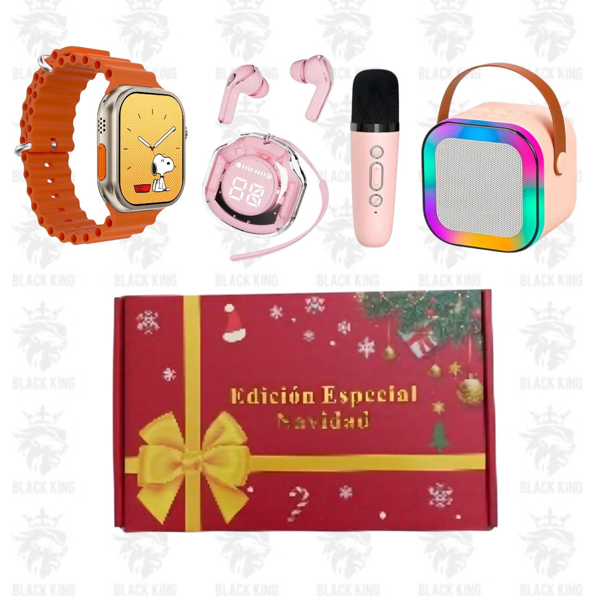 Caja navideña smartwatch + auricular bluetooth + parlante con micrófono / B-21016