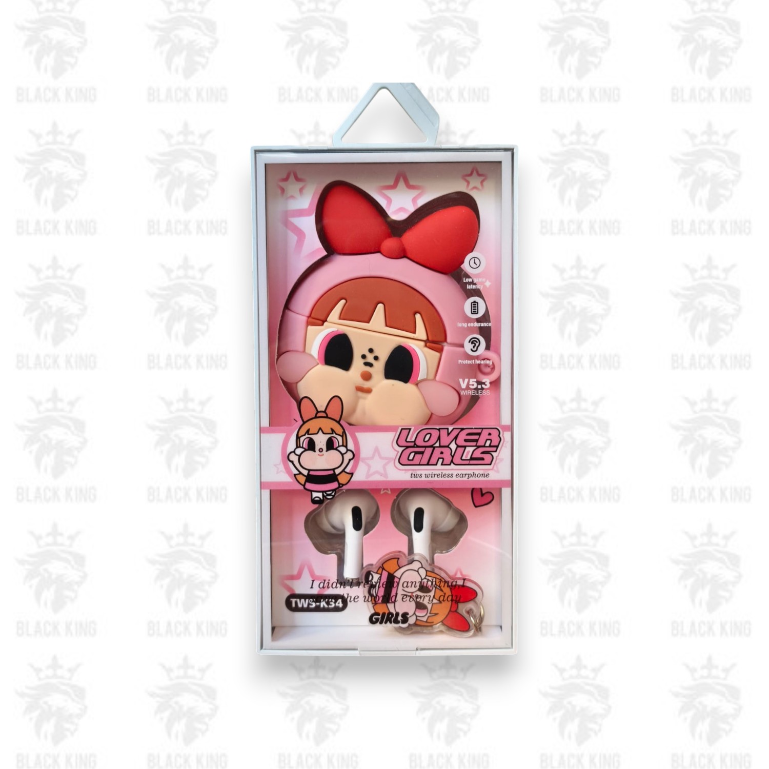 Auricular bluetooth con funda de las chicas super poderosas mas un llavero / TWS-K34
